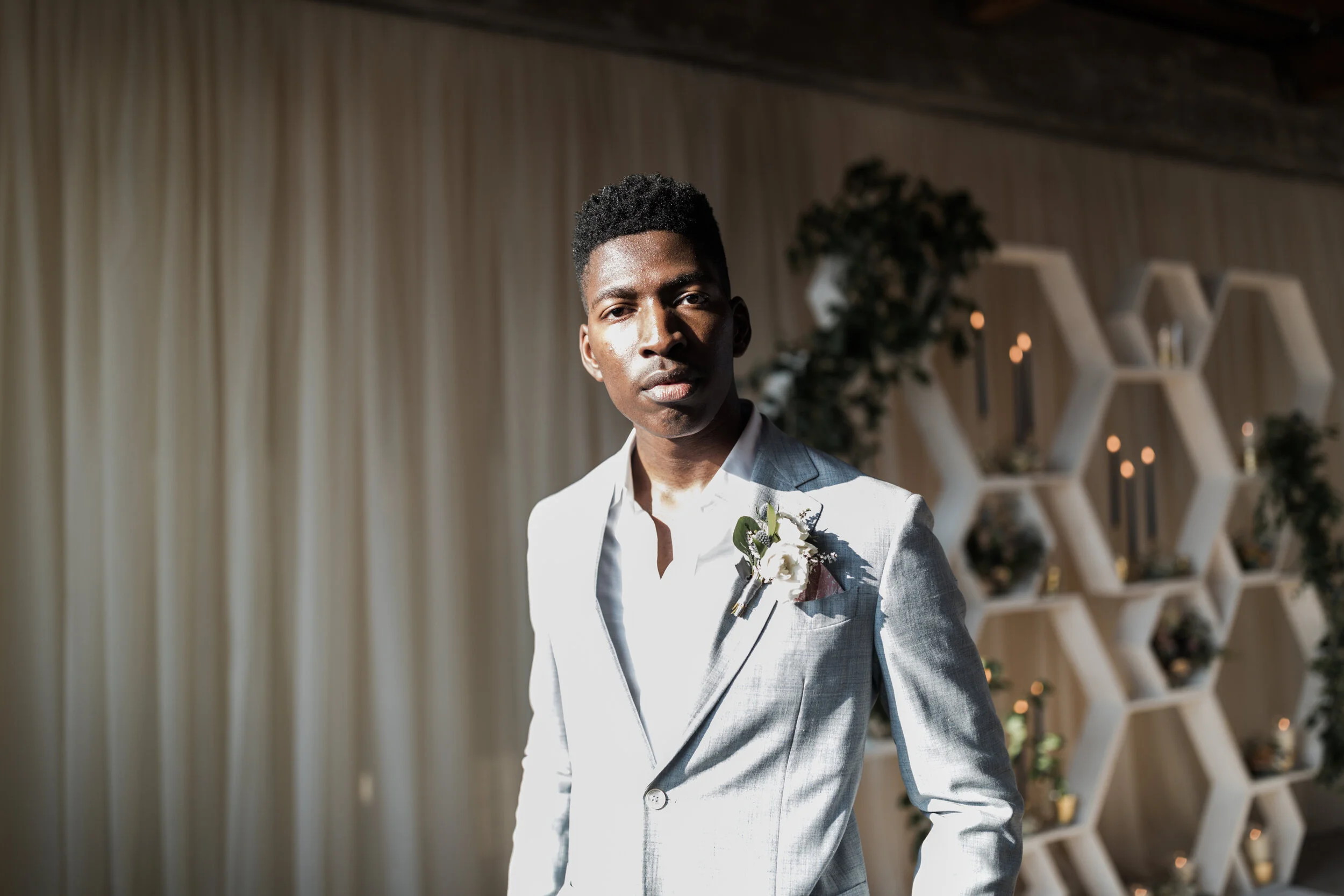 I will listen to your vision of how you want to feel on your wedding day, overall wedding aesthetic, and with your budget, timeline, and body-shape in mind, I will compile a carefully selected group of specific suit designers and styles, corresponding accessories, and a grooming guide.